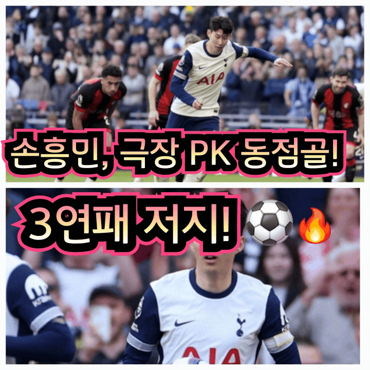 “이게 바로 손흥민 클래스!”토트넘 vs 본머스 EPL 28라운드, 손흥민이 해냈다!손흥민(33)이 토트넘을 패배의 늪에서 구해냈다. 후반 교체 투입된 그는 경기 막판 페널티킥(PK)으로 동점골을 성공시키며 토트넘의 리그 3연패를 막았다.이번 경기에서 손흥민은 팀 내 최고 평점을 받으며 ‘클러치 플레이어’의 면모를 다시 한 번 입증했다. 이제 그의 시즌 7호골이 기록되었고, 본머스를 상대로도 꾸준한 득점력을 과시했다.> ✅ 2024-2025 EPL 28R 경기 결과📍 토트넘 2 : 2 본머스⚽ 득점자: 파페 사르(후반 22’), 손흥민(PK, 후반 37’)손흥민, 후반 투입 후 경기 흐름 바꿨다! 🎯이날 손흥민은 교체 명단에서 시작했다. 후반 시작과 동시에 브레넌 존슨과 교체 투입되며 공격진에 활력을..